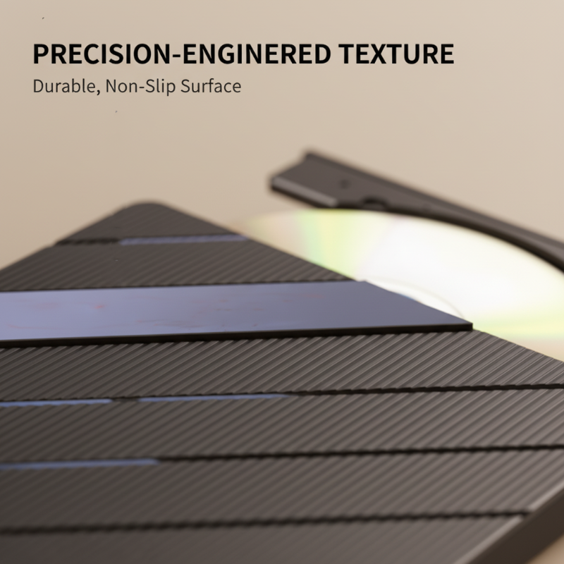 STABILA HALKFRIA PLATTOR – Utrustade med halkfria gummifötter som greppar ordentligt mot skrivbordet, förhindrar oönskade rörelser och vibrationer för att säkerställa stabil skivläsning och dataöverföring utan avbrott.