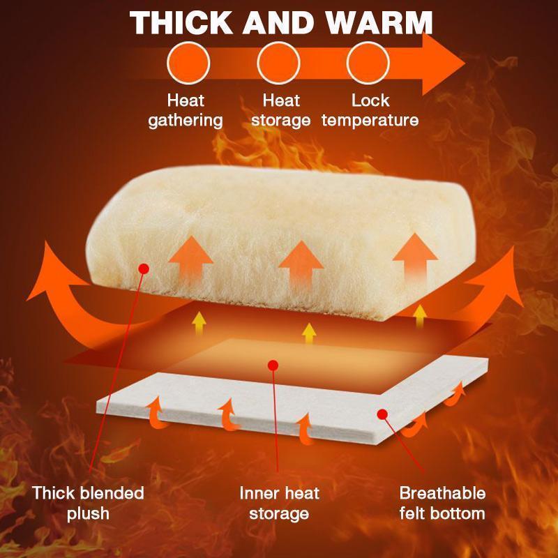 Tjock ullfilt kan effektivt blockera sulans kyla, och de långa, plyschlindade fotstegen håller kvar värmen. Imitationsull är inte lämplig för tvätt, ta ut den för soltorkning efter att ha använts en tid, för bättre värme.