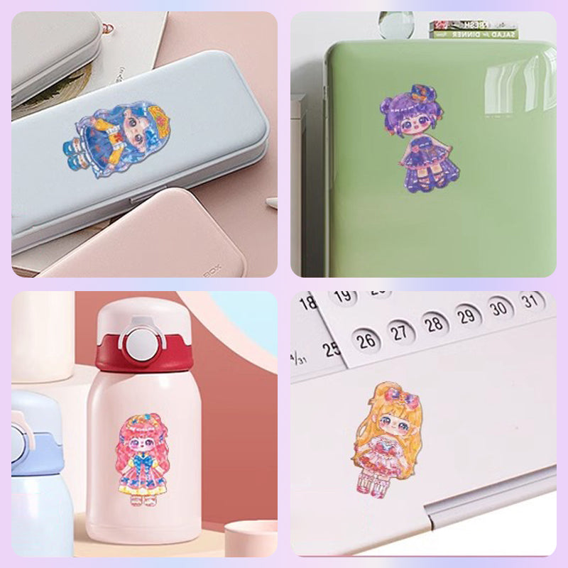 LJUS, LIVFULL OCH Mà NGSIDIG DESIGN: Laserbelysta magnetiska bitar med ljusa, livfulla fÀrger ger ett visuellt tilltalande intryck. Dessa mÄngsidiga klistermÀrken kan fÀstas pÄ ytor som kylskÄp, pennfodral eller termosflaskor för lek och skoj pÄ sprÄng.