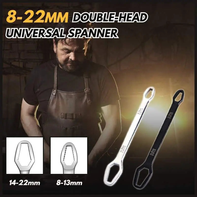 - 8-22mm dubbelhuvudet Universal Skinker är speciellt utformad för experter inom reparationsbranschen. En skiftnyckel kan användas för olika typer av skruvar. Den är gjord av krom vanadiumstål och är stark och hållbar. Det är ett oumbärligt underhållsverktyg för att lösa olika problem med skruvborttagning!